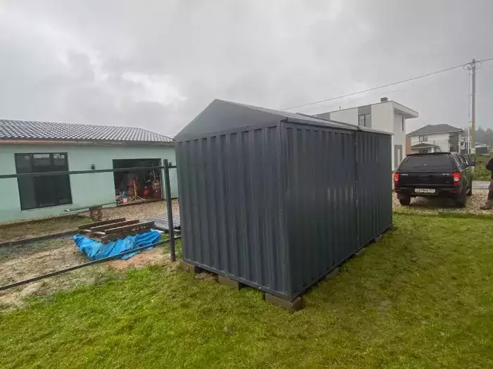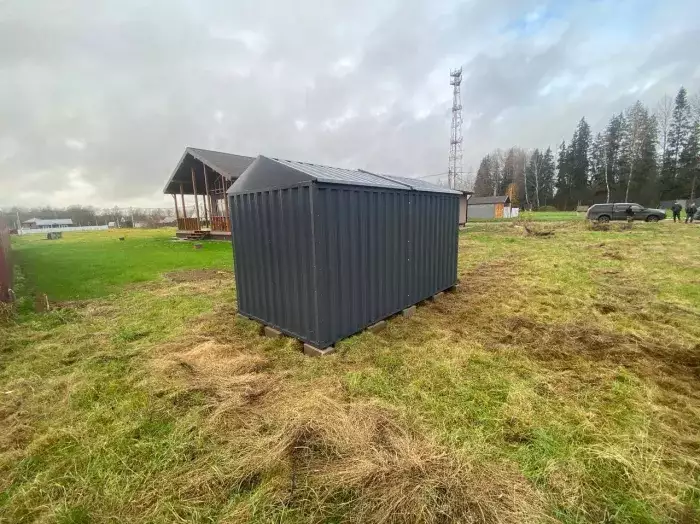 Доставляли хозблоки на участок заказчика манипулятором в разобранном виде. Нашими специалистами предоставлялась услуга по сборке. Справились с задачей за 3 часа.