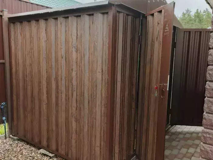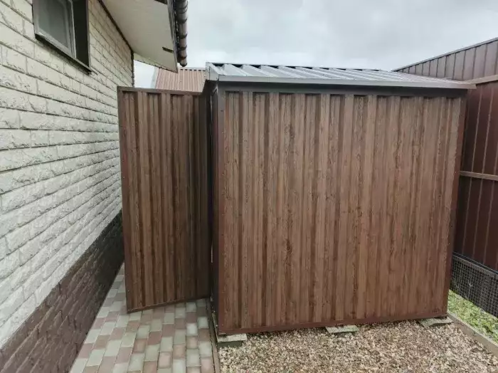 Доставляли хозблок на участок заказчика манипулятором в разобранном виде. Нашими специалистами предоставлялась услуга по сборке изделия.