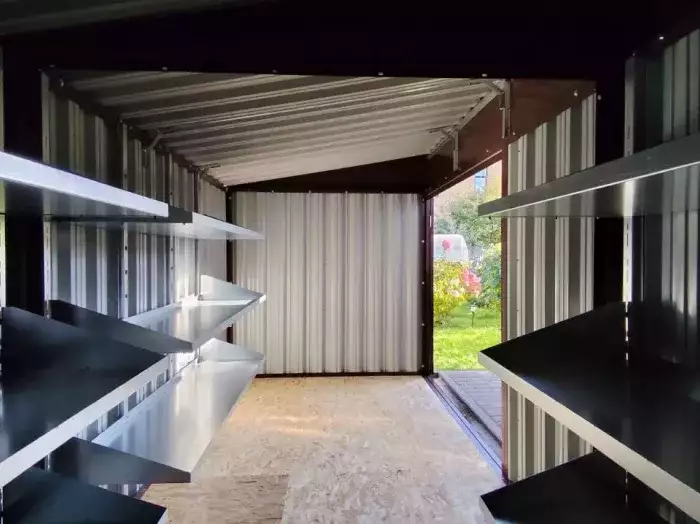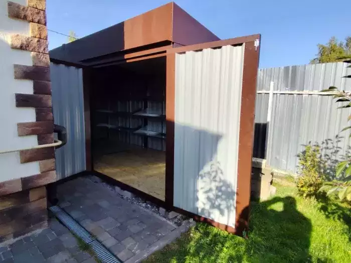 Проект: уличный шкаф 0,9 х 2,35 х 2,35 м для хранения автомобильных колес в графитовом цвете.
