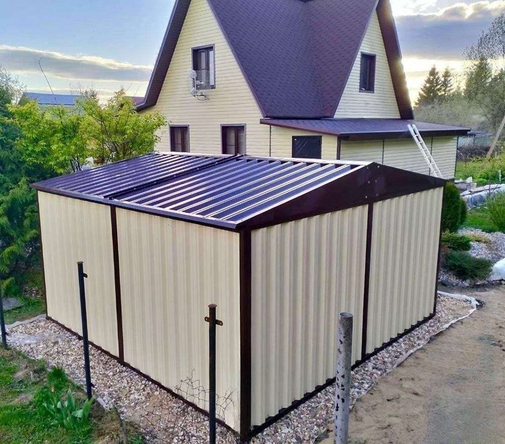 Конструкция была выполнена в цвете, максимально сочетающемся с домом на участке, были выбраны в тандеме цвета RAL 1015 и RAL 8017.