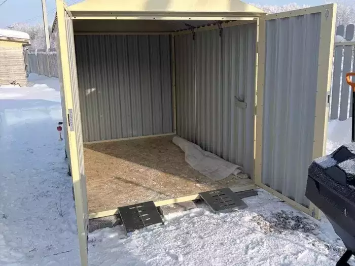 Весь диалог вёлся по телефону и WhatsApp, так как приехать к нам у Евгения не получалось. Согласовав все параметры, а именно цвет (RAL 1015 слоновая кость, потому что гараж Евгения как раз в таком же цвете), тип крыши (двухскатная), длину в 4 м, мы приняли первую часть оплаты и приступили к заказу.