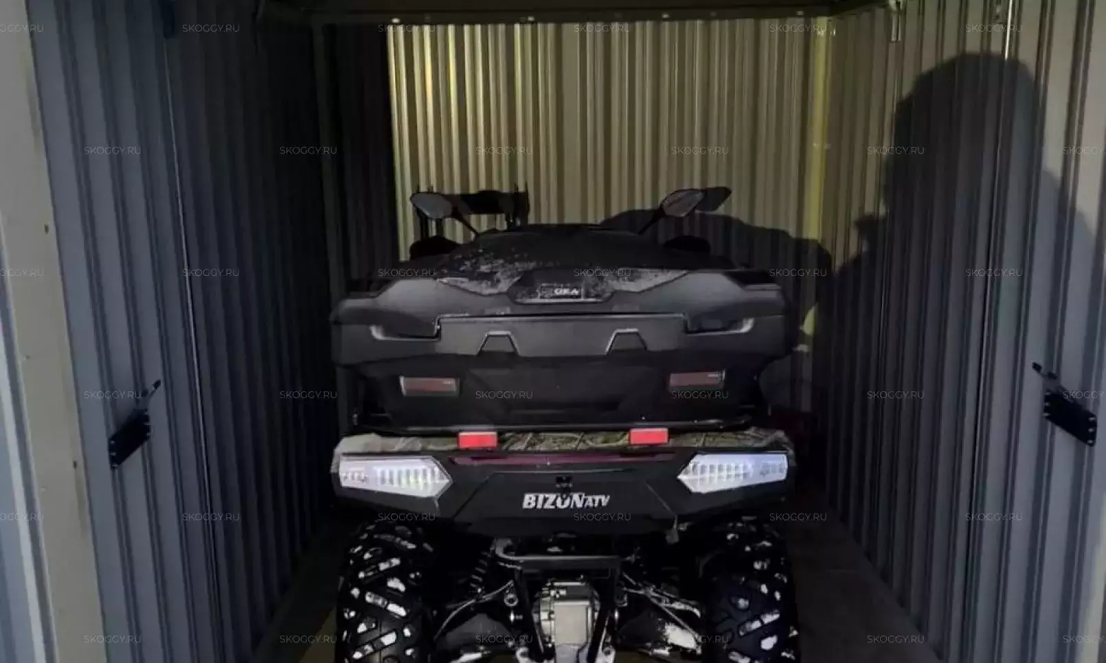 Проект: 3-метровый гараж с увеличенной высотой 2,8м для хранения погрузчика в шоколадно-коричневом цвете.