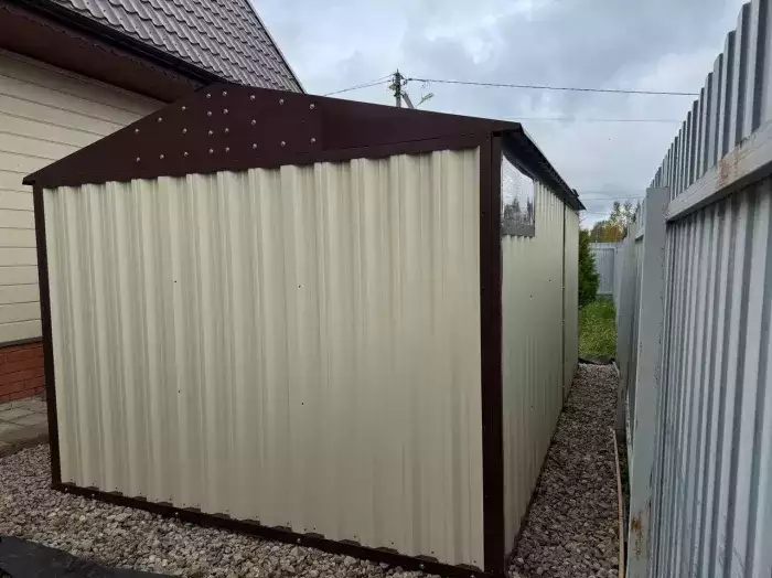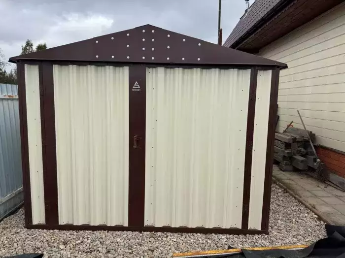 Дополнительно хозблок оборудован прямым стеллажом с двумя полками, а также световым окном размером 90 х 30 см.