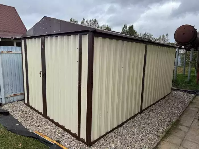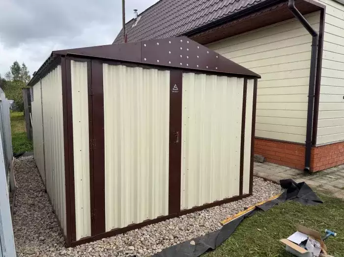 Проект: 3-метровый хозблок для хранения хозяйственных принадлежностей в графитовом цвете и с нанесением принта.