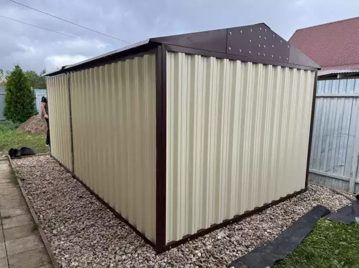Нами была изготовлена стандартная 3-метровая конструкция с односкатной крышей и боковой дверью в строгом графитовом цвете RAL 7024. А еще на одну из стен изделия был нанесен красивейший принт с Ростовской росписью.